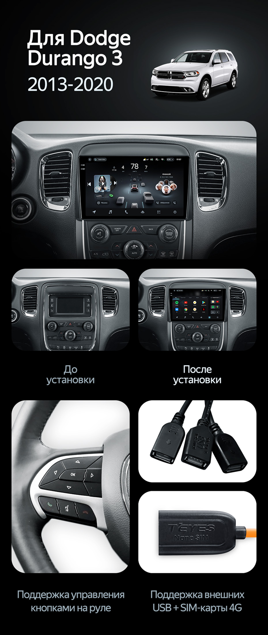 Переходная рамка Dodge Durango 3 (2013-2020) (9") - купить всего за 7 200 руб. в интернет-магазине в Нижнем Тагиле Teyes.com.ru. ✓ Самый лучший выбор мультимедиа ✓ Лучшая замена штатному ГУ ✓ Тел. +7 (800) 775-31-74
