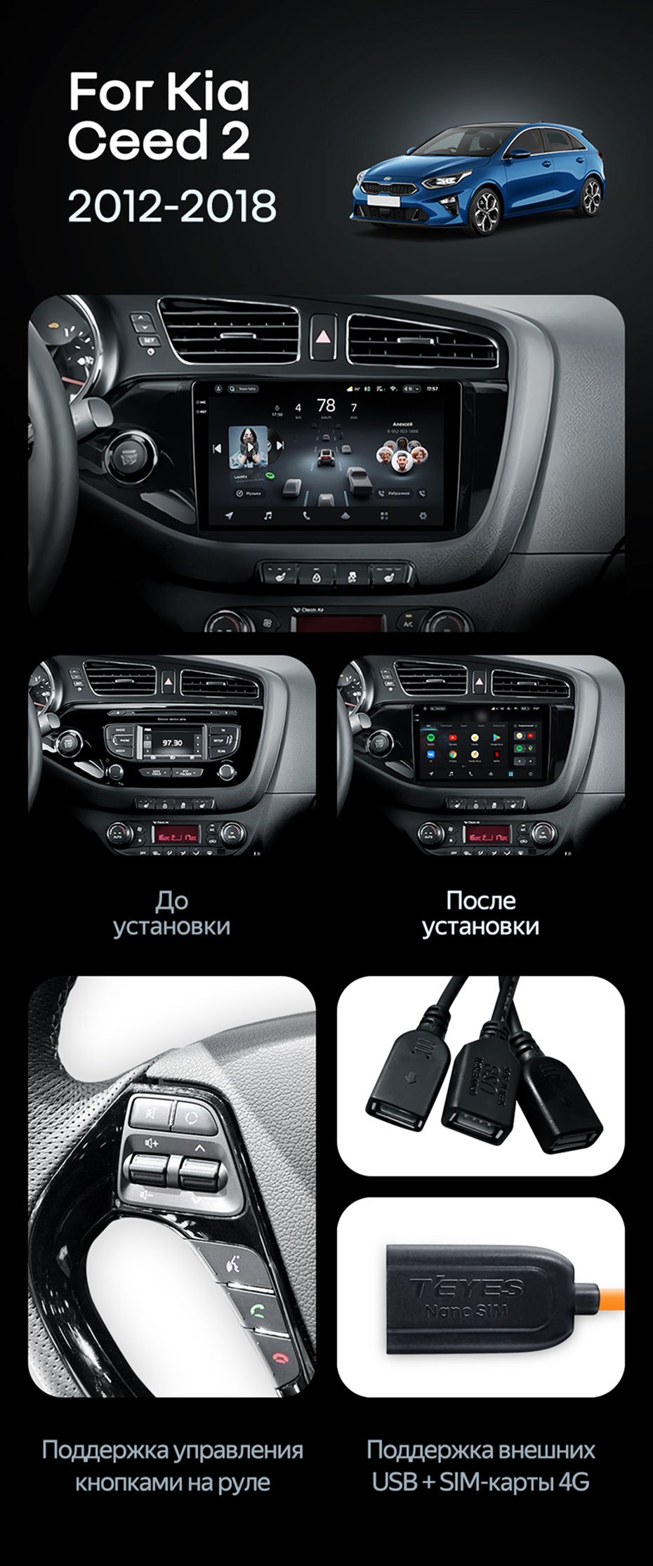 Штатная магнитола Teyes CC4 6/64 Kia Ceed 2 JD (2012-2018) - купить всего за 43 920 руб. в интернет-магазине в Нижнем Тагиле Teyes.com.ru. ✓ Самый лучший выбор мультимедиа ✓ Лучшая замена штатному ГУ ✓ Тел. +7 (800) 775-31-74