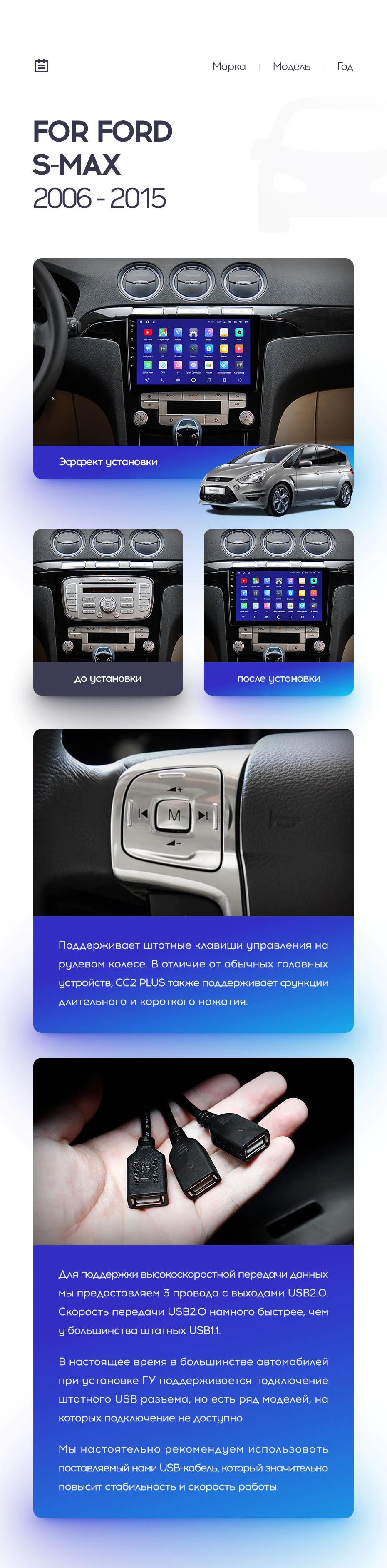 Полный комплект установки магнитолы Teyes с рамкой и проводкой можно выбрать в каталоге штатных магнитол Ford S-MAX 1 (2006-2015).