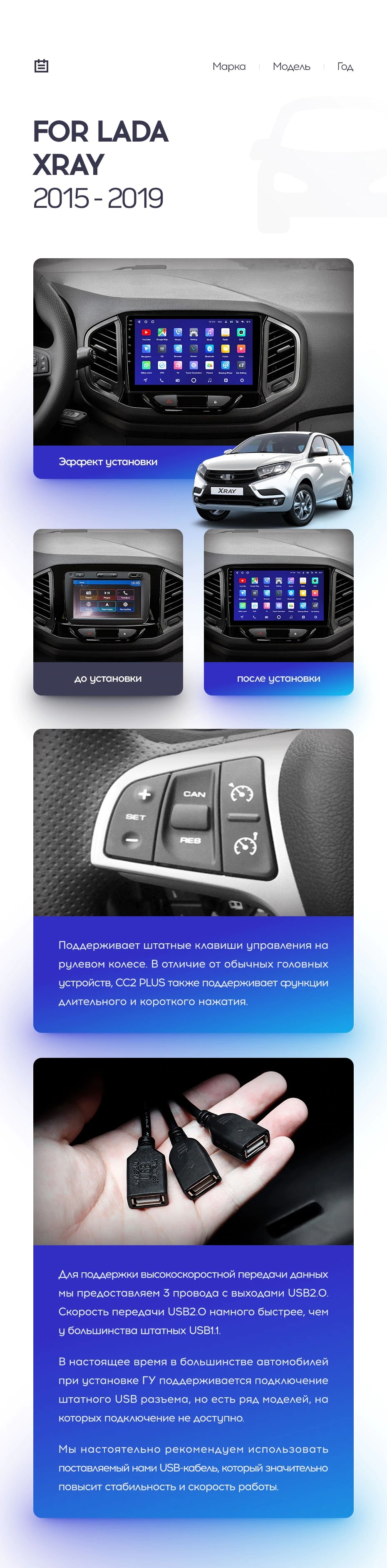 Полный комплект установки магнитолы Teyes с рамкой и проводкой можно выбрать в каталоге штатных магнитол LADA Xray (2015-2019).